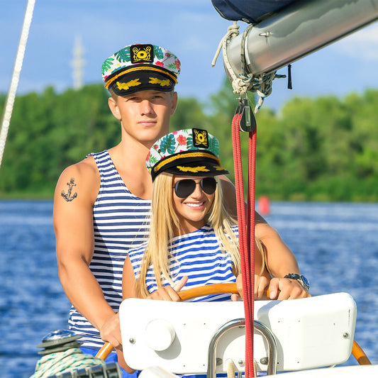 dodowin Captain Hat for Men Women Adjustable Sailor Hats Boat Cruise Yacht Rock Party Costume Beach Essential Hawaiian Outfit
